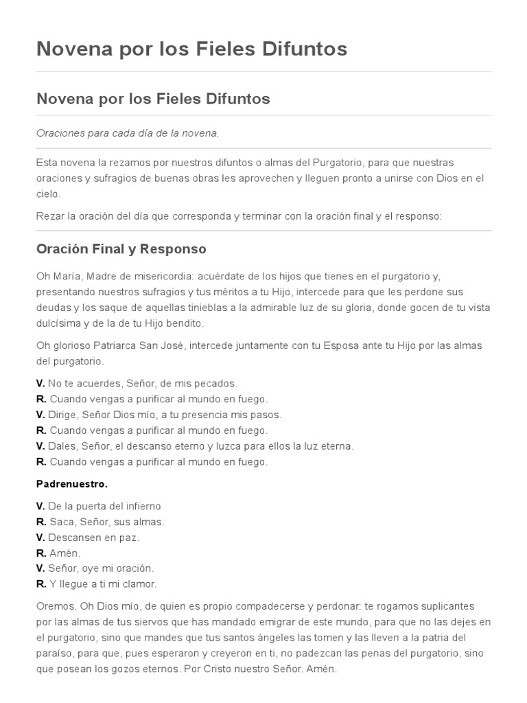 Calameo Novena Benditas Animas Tia from p.calameoassets.com La liturgia de los difuntos es tal vez la más hermosa y más consoladora de todas. Acuérdate de los hijos que tienes en el purgatorio y, presentando nuestros sufragios y tus méritos a tu hijo. A ti levanto mis ojos 3. El 11 de mayo a las 20:00h el señor obispo de la diócesis, d. Esta novena la rezamos por nuestros difuntos o almas del purgatorio, para que nuestras oraciones y sufragios de buenas obras les aprovechen y lleguen pronto a unirse con dios en el cielo. Las formas de intercesión por las almas del purgatorio. Hacer sufragios por los difuntos es, ante todo, un deber de naturaleza. Moños para difuntos, son algunas de las imágenes que podrás encontrar aquí en nuestra página, las puedes descargar gratis para expresar el.